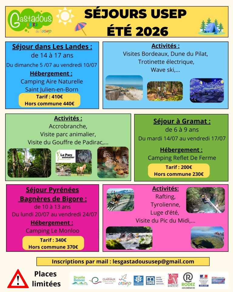 Proposés par les Gastadous, un stage vélo et les séjours été 2026.